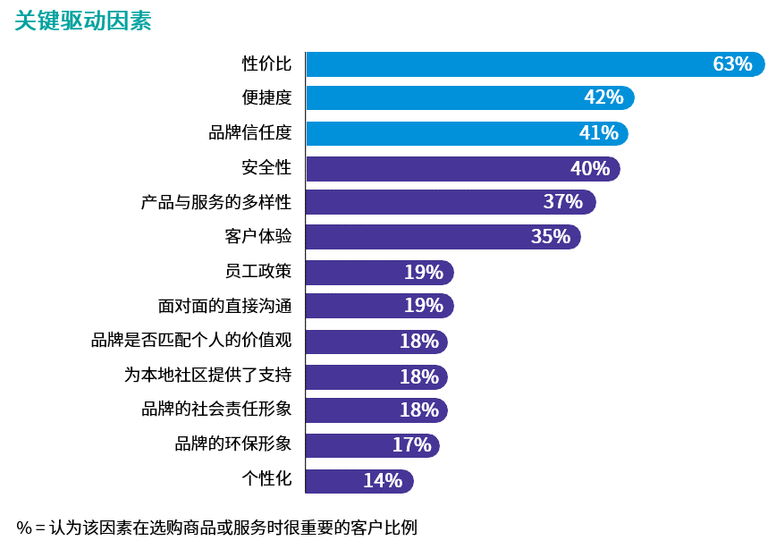 受新冠肺炎疫情影响,消费者在选购商品和服务最看重的因素正在发生变化。高性价比成最重要的决定性因素,同时客户对于产品、服务和信息获取的便利性需求进一步被激发,对于数字化体验的需求也日益提升。