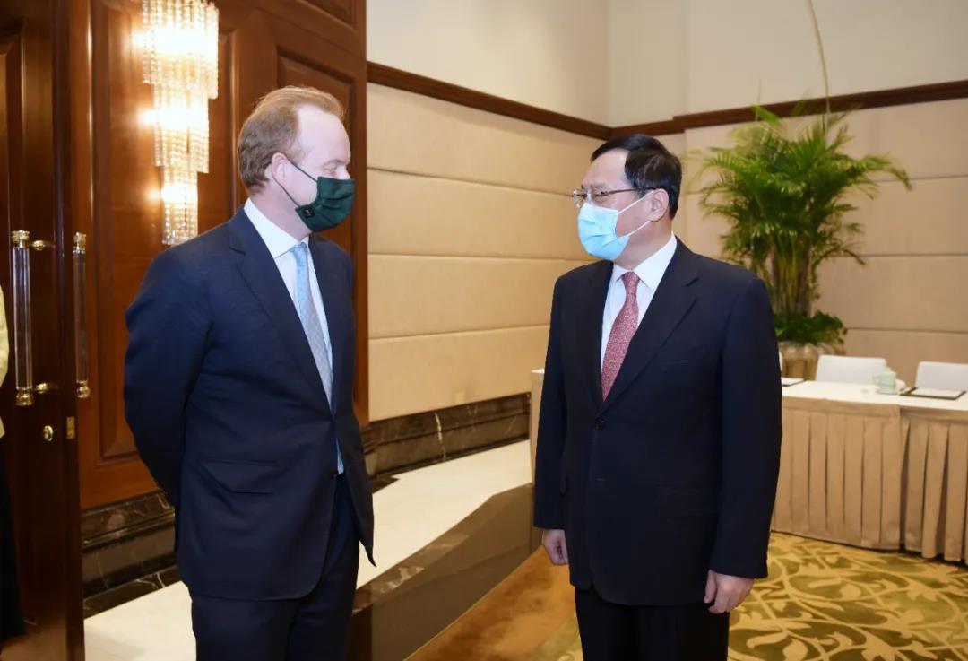 上海市领导诸葛宇杰参加会见。