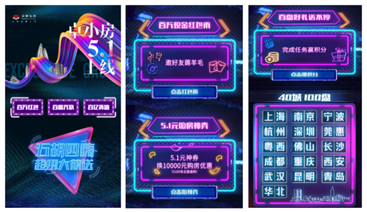 红包雨打头阵,卓越神券做先锋,营销天团坐镇直播间,卓小房五一假期四场直播联袂而至。