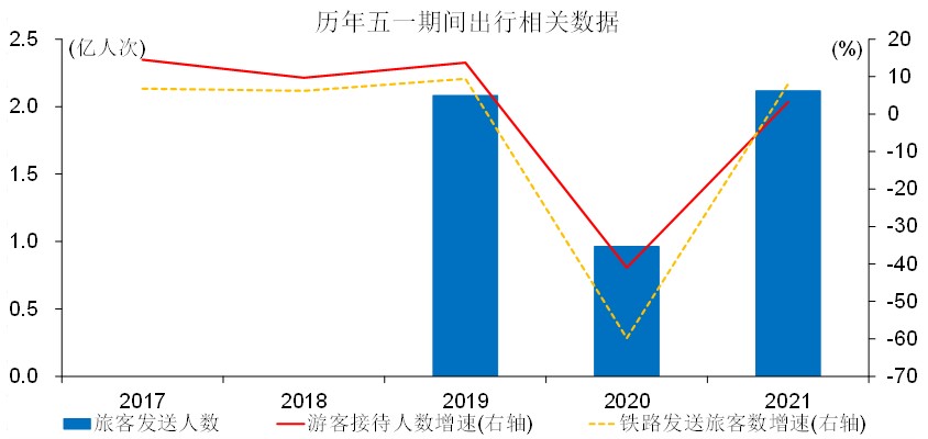 五一,全国客运和游客人数分别达2.7亿和2.3亿人次,可比口径分别较2019年同期增长0.3%和3.2%;劳动力输出大省、热点旅游城市等人流量相对较大。