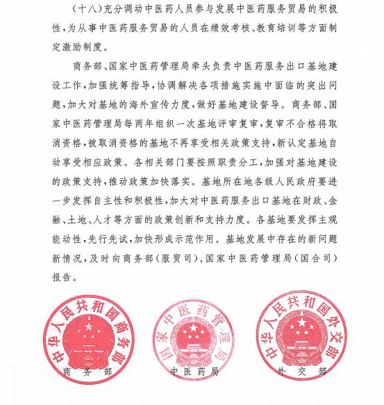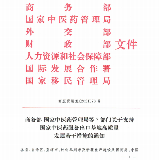 5月13日,据商务部网站消息,商务部、国家中医药管理局等7部门联合印发《关于支持国家中医药服务出口基地高质量发展若干措施的通知》(以下简称“通知”)。