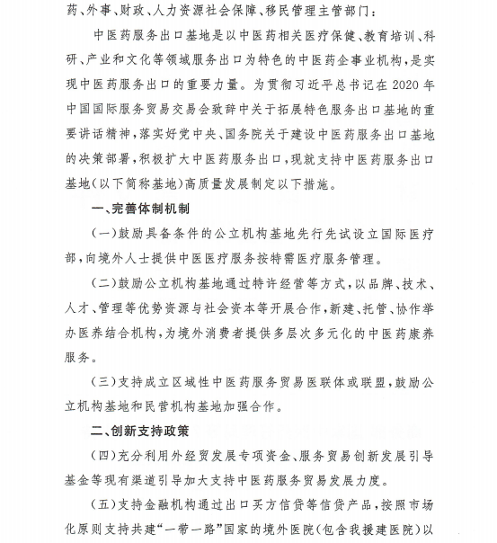 通知指出,充分利用外经贸发展专项资金、服务贸易创新发展引导基金等现有渠道加大支持中医药服务贸易发展力度。