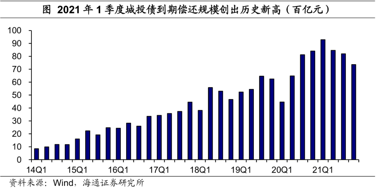 同样的,地方的债务再融资和还本付息压力也在加重。以城投债为例,今年1季度城投债的到期偿还规模创出历史新高,全年城投债到期规模预计达到3.3万亿元,相比疫情之前2019年到期规模增长了40%还多。