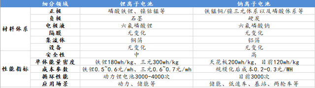 能量密度方面,东北证券指出,钠电池能量密度(一般不到120Wh/kg)明显低于磷酸铁锂电池(160Wh/kg)与三元电池,与新能源车电池需求匹配度低,暂无替代锂电池成为动力领域主流技术的可能性。