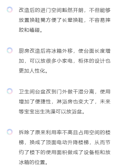 经过改造后的进门空间豁然开朗,厚重的实木转角楼梯不见了,进门不但能够放置换鞋凳,方便了长辈换鞋,设计师还做了一整面的柜子,有了大量的储物空间。