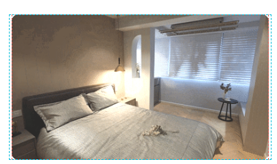 卧室里的弧形墙洞与客餐厅遥相呼应,不仅让这套婚房更具美感,更重要的是,随处可见的墙洞,让空间更有透视感,也让小面积的房子看起来更大。