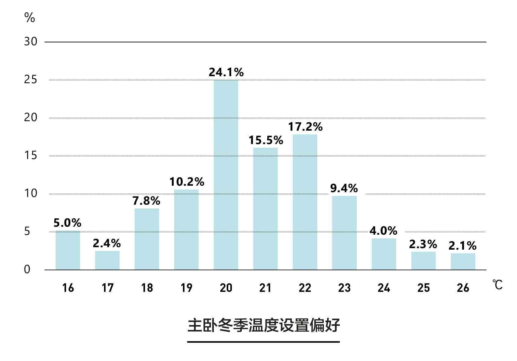 有趣的是,三恒用户在冬季室温设置上呈现出一定的偏好:相比奇数,更喜欢将温度设定为偶数,比如20℃、22℃。这很可能与中国人对数字的群体偏好有关——更喜欢偶数。在中国传统文化语境下,偶数往往隐喻圆满、和谐、吉祥,因此受到相当一部分人的喜爱。