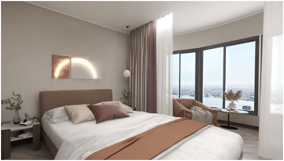 洗晒功能集中在客厅阳台后,主卧阳台则规划成单人座椅+小边几的观景阳台,休息日在这里看看书、赏赏景十分惬意。