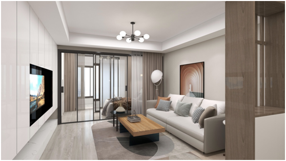 2. 长虹玻璃+窗帘软饰,客厅隔出老人房,生活动线直接,还不减采光;