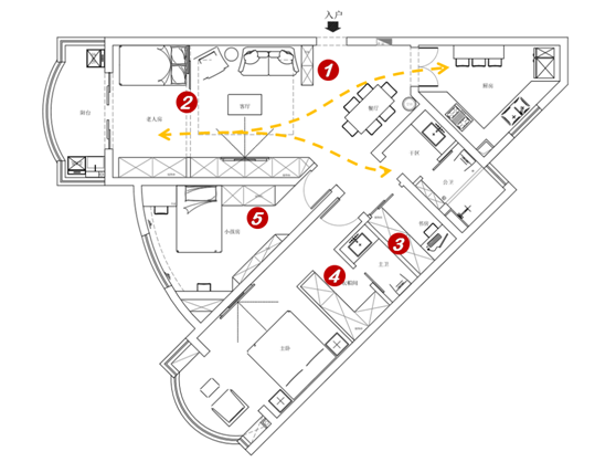 ○ 异形格局难规划,功能分散、混乱;