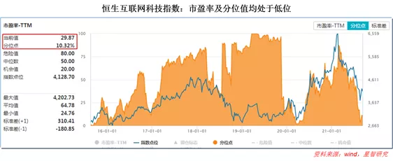 根据低估买入的原则,当前的确是抄底买入的好时机了。以几乎涵盖所有港股上市互联网企业的恒生互联网科技指数(恒生互联网ETF的跟踪指数)为例,当前指数市盈率仅为29.87倍,处于指数发布日(2015年8月17日)以来的10.32%分位。