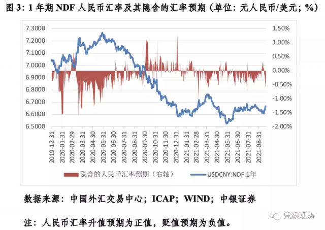 人民币汇率单边贬值预期但预期基本稳定。当月,各交易日1年期无本金交割远期(NDF)均隐含人民币汇率贬值预期;月均贬值预期为0.26%,与7月份基本持平(见图3)。
