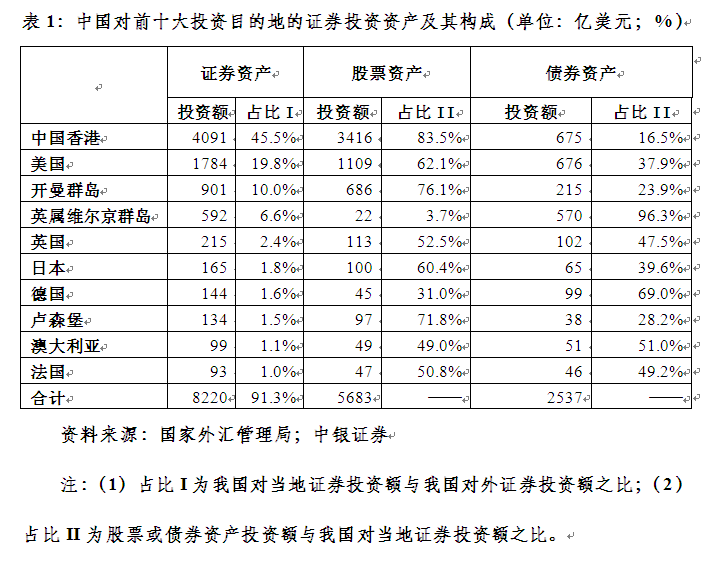 香港和美国是我国对外证券投资主要目的地