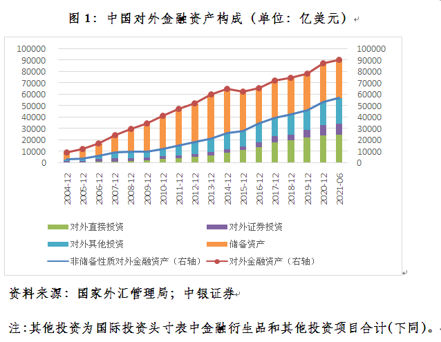 根据国际投资头寸表统计,到今年6月末,我国对外金融资产9.03万亿美元,较2004年末增长8.64倍。剔除储备资产后,非储备性质对外金融资产5.68万亿美元,增长16.89倍(见图1)。后者增速远高于前者,反映境内投资者多元化资产配置需求更好得到了满足。