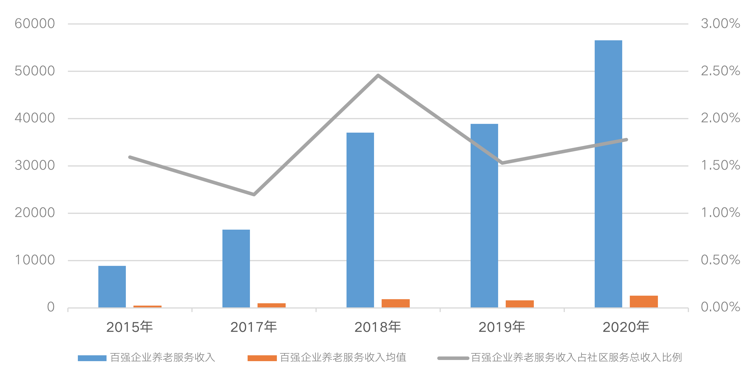 这意味着,百强企业在社区养老服务的布局依旧有限,当前物业服务企业深入社区养老服务还未出现明显的发展趋势。