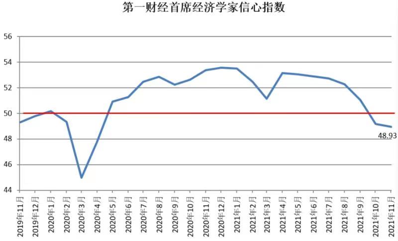 本期,第一财经研究院发布的“第一财经首席经济学家信心指数”为48.93,下探至自2020年5月以来的最低点,经济学家们预计11月我国经济将面临较大压力。