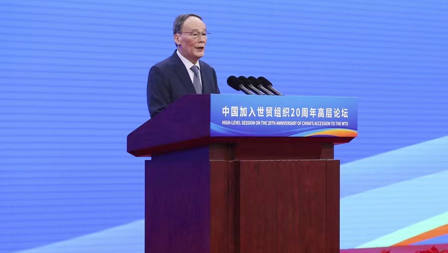 中国加入世界贸易组织20周年高层论坛5日上午在国家会展中心(上海)举行。国家副主席王岐山出席论坛并发表致辞。