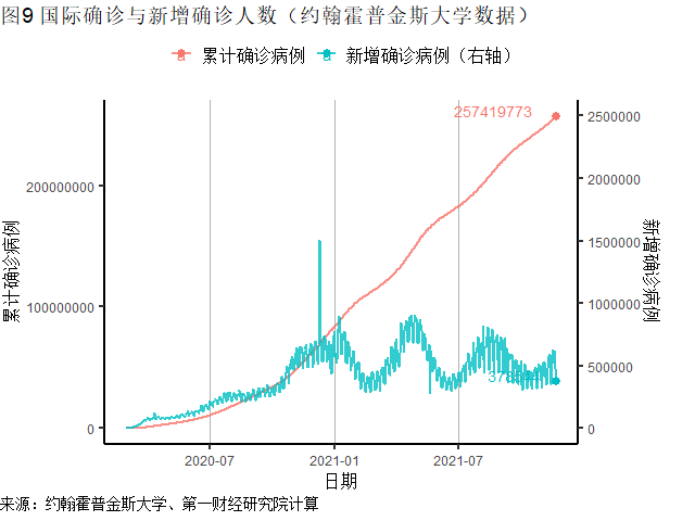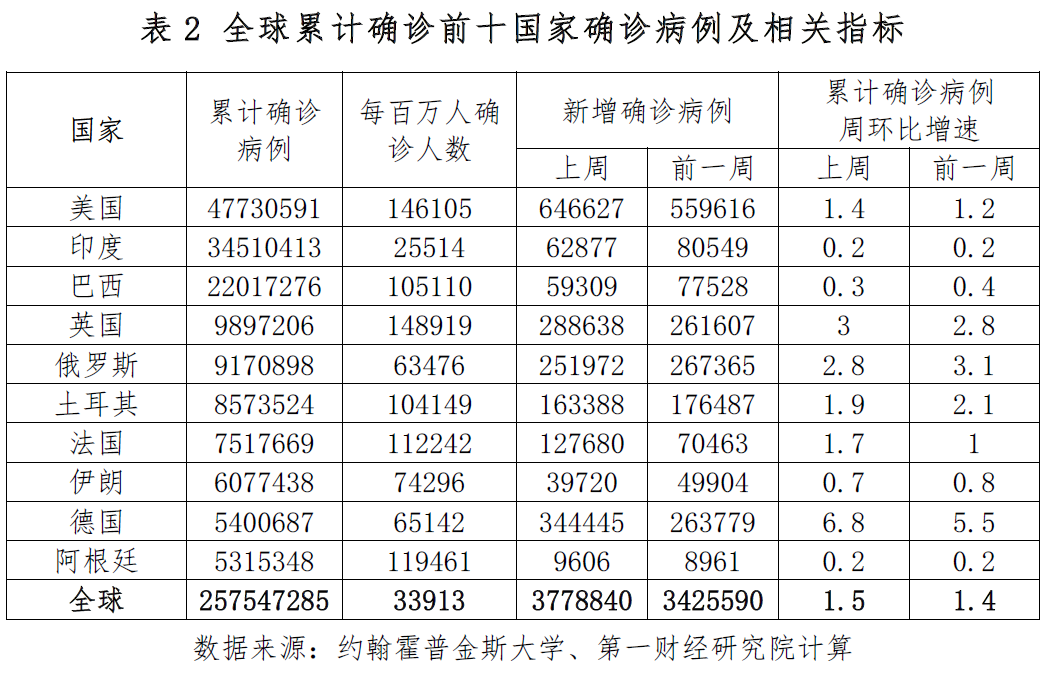 截至北京时间11月22日13点,全球新冠肺炎确诊病例为2.58亿例(约翰霍普金斯大学数据)。上周(11月15日13点-11月22日13点)全球新增确诊病例377.9万例,自9月中旬以来再次接近400万例;新增死亡病例5万例,连续7周维持在这一水平附近。