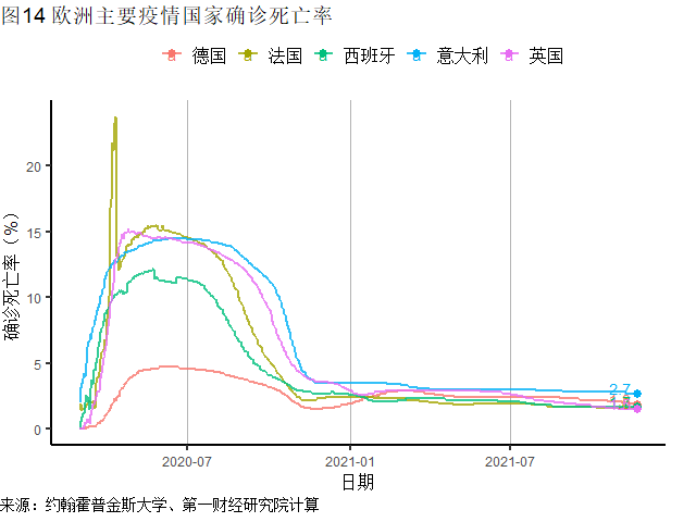 从每百万人新增确诊前十的国家来看,90%的国家位于欧洲,7个为发达国家。德国(新增34.4万例)是上周新增病例最多的欧洲国家,最近5周新增确诊周环比增速均超过30%。根据OurWorldInData的数据,截至7月21日德国完成疫苗接种计划的人群占比只有67.4%,尚不及通常认为可以形成免疫屏障的比例(70%)。