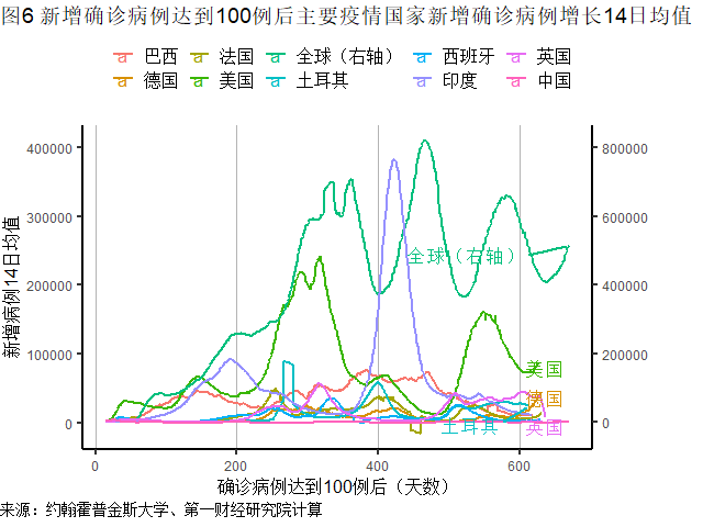 发展中国家疫情相对缓和,上周新增确诊145.7万例,为2月中旬以来最低。