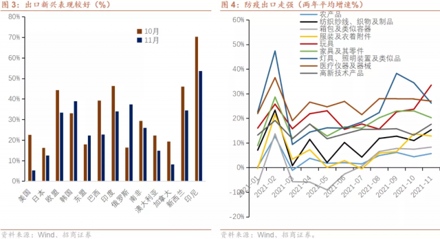 (1)11月出口同比增速为26.1%,前值27.1%;11月出口两年平均增速21.2%,前值18.7%。