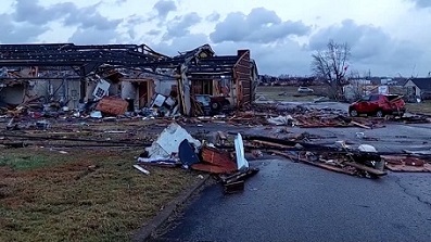 美国总统拜登表示,这可能是美国历史上最严重的龙卷风灾害之一。在重灾区肯塔基州,预计死亡人数将达上百人。肯塔基州西南部一座名为梅菲尔德的小镇几乎被夷为平地,约1万名当地居民失去家园。亚马逊在伊利诺伊州圣路易斯市附近的仓库屋顶坍塌,造成至少6人死亡。
