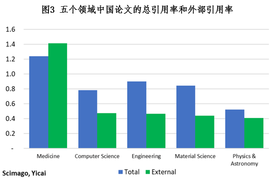 中国学者发表的文章大多集中在工程学、医学、材料科学、计算机科学和物理/天文学五个领域。SCImago门户网站允许我们计算引用率,以评估每个学科领域的文章质量。