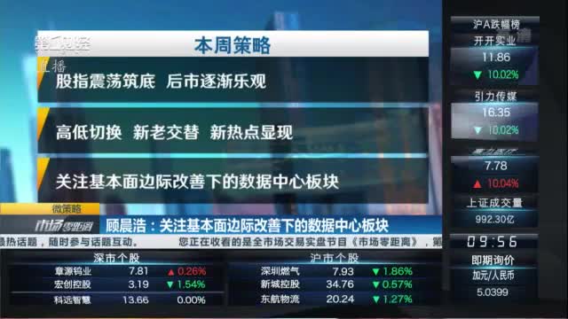 顾晨浩认为股指震荡筑底,后市逐渐乐观,高低切换,新老交替,新热点显现,关注基本面边际改善下的数据中心板块。顾晨浩认为数据中心行业是数字经济的“基础底座”,全国一体化大数据中心体系正加速推进,去年报建项目数量下降,今年规模重新扩大,一线城市数据中心价格有望触底回升。