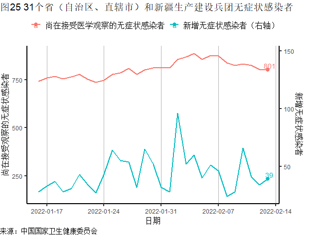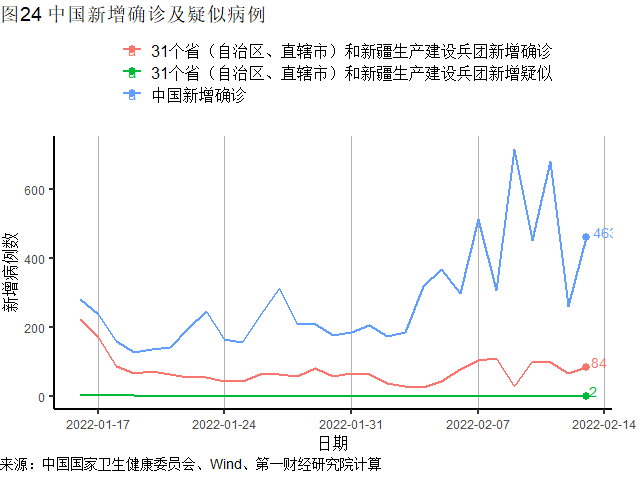 根据中国国家卫健委数据,上周31省(自治区、直辖市)和新疆生产建设兵团报告新增确诊病例595例,其中本土病例295例;新增无症状感染者278例,其中本土无症状感染者20例。春节后,本土时有局部散发疫情出现。