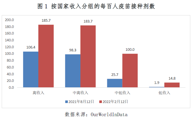 根据OurWorldInData的数据,截至2月12日全球新冠肺炎疫苗累计接种103.5亿剂,每百人接种130.8剂;其中高收入国家每百人接种185.7剂,是低收入国家每百人接种数(14.8剂)的12.5倍,这较6个月前的56倍已经明显改善。但从绝对增量来看,过去6个月,高、中等收入国家每百人新增疫苗接种均在80剂左右,远高于低收入国家的12.9剂。可以说全球疫苗接种进度依然悬殊;而且按照这样的速度,低收入国家短期内难以达到70%的疫苗接种率,该水平通常被认为可以建立一定的免疫屏障。这对全球抗疫而言,并不是一个好消息。
