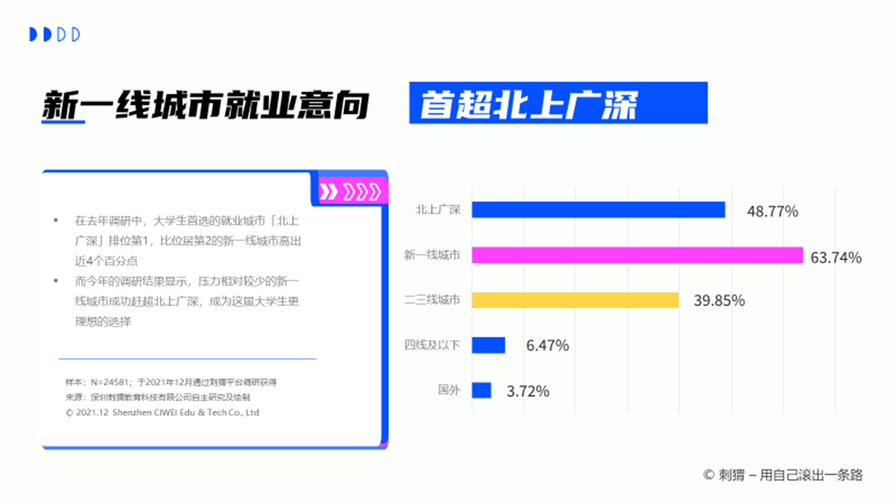 今年出现了一个非常有意思的现象,同学们对新一线城市的青睐首次超过了北上广深。即使在2020年的时候,同学们的毕业去向还是首选北上广深,今年为什么发生这样的变化呢?