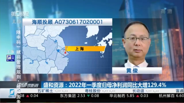 盛和资源于2022年4月29日披露一季报,公司2022年一季度实现营业总收入43.4亿,同比增长84.6%;实现归母净利润7.1亿,同比增长129.4%;每股收益为0.41元。