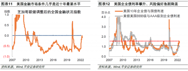另一方面,所谓“物极必反”、“欲速则不达”,美联储采取过于激进的加息举措,可能提早引发金融风险、继而引发经济衰退。注意到,当前芝加哥联储调整后的全国金融状况指数显示,美国金融金融市场条件几乎是近十年最紧水平(除了2020年新冠疫情初期的“美元荒”时期)。此外,近期华尔街对于美国企业债风险给予更多关注,因美联储加息预期较强,美国企业债利率攀升、风险偏好急剧降温(BBB与AAA级企业债利差走阔)。如果美联储加息过于激进,美国企业债市场可能进一步抛售风险产品、追逐安全资产,由此或带来的金融风险不容忽视。我们认为,当下美联储和市场都应该保持灵活,保持面对经济和通胀形势不确定性的“谦逊”,避免在过度敬畏通胀的同时,过度忽略了另一极——市场。