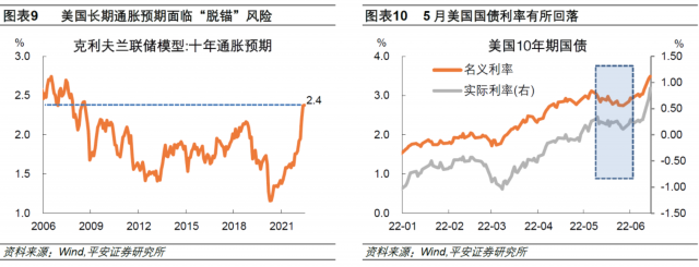 二是,美联储需要打压通胀预期。克利夫兰联储模型显示,5月和6月美国十年通胀预期升至2.4%,突破了2018年2.2%的高点,创国际金融危机以来最高水平。此前,鲍威尔曾“得意”地表示通胀预期仍锚定在合理区间,但如今美国通胀预期面临“脱锚”风险。因此,美联储需要表现更大决心遏制通胀,以期通胀预期不再进一步偏离2%的目标。