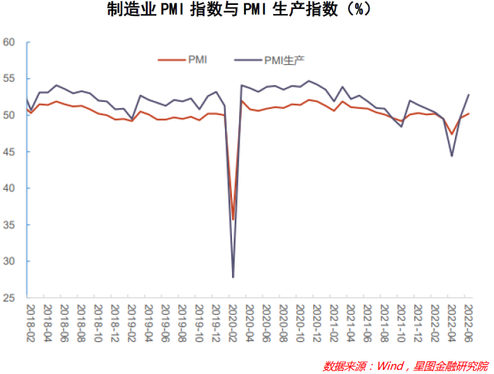 最后,综合来看,疫情后解除封控使得消费、投资都有了显著的修复增长。在“稳增长”的政策目标之下,制造业与非制造业PMI指数均有了较大幅度的提升,且均回到荣枯线之上的扩张水平。而随着近期第九版疫情防控方案的提出、行程卡“摘星”、上海恢复线下场所营业等多重利好政策的出台,7月份的PMI数据仍能够保持继续提升的态势。