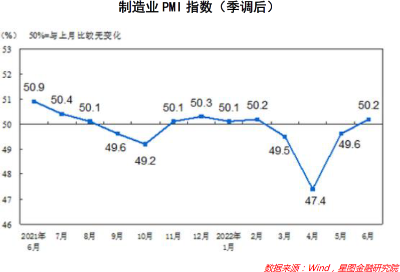 从今年3月至今,上海疫情爆发,随后多地受疫情管控,经济景气度受到极大影响,4月份制造业PMI指数环比下降了2.1个百分点,随着疫情的影响下降及复工复产,5月PMI恢复至49.6%。6月以来,随着物流保通保畅等政策措施显效发力,制造业供需两端加快恢复,景气度环比继续改善,并在2022年疫情爆发后首次恢复至50%以上的扩张区间。相比5月上升0.6个百分点至50.2%。