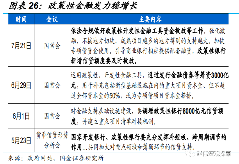 作为广义财政重要补充,政策性金融机构稳增长关注度上升,政策先后调增政策性银行信贷额度8000亿元、发行3000亿元金融债券用于补充重大项目资本金,或在企业中长贷中已有体现。