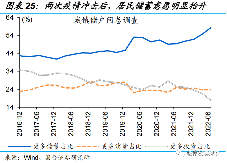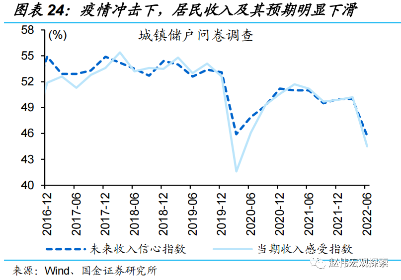 企业经营持续低迷影响就业、尤其是吸纳就业最多的服务行业,城镇储户调查的居民信心指数持续下滑、倾向储蓄占比创新高至58.3%、较一季度进一步上涨3.6个百分点。