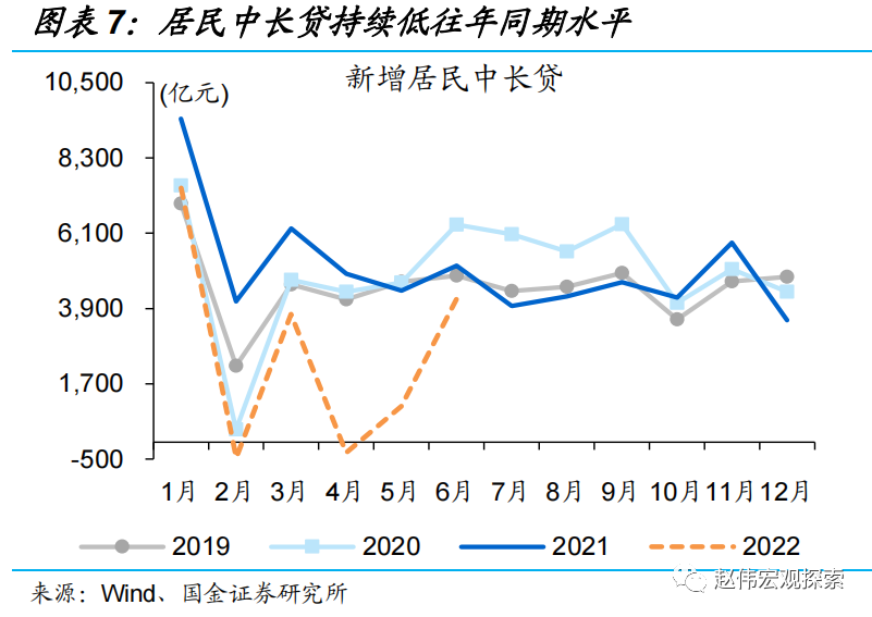 企业贷款虽同比多增,但结构尚待改善,短贷和票据合计同比多增超3.6万亿元、新增中长贷少于去年同期,票据持续“冲量”的现象在6月才有所改观。相较于企业端,居民贷款整体低迷、尤其是中长贷同比大幅减少近1.9万亿元,与地产销售走弱等有关。