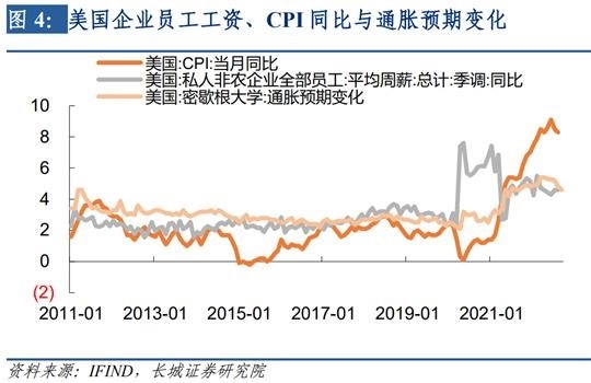 今年以来我们多次发布报告里强调美联储加息较晚和幅度较小,阻止不了通胀的逐级上升和持续时间。截止到现在,美国的实际利率仍然较低,比如当前美国十年期国债利率在3.5%水平,而CPI同比在8.3%,实际利率为-4.8%,负值幅度都超过了国债利率,显然利率过于落后。而过低的利率导致劳动力市场仍然旺盛,失业率同比还在负增长速度上,并且远远低于过去二十年的增速水平。在这种过热的劳动力格局下,工资上涨势头强劲,8月私人非农企业员工的平均周薪增速还在4.6%,远远高于美国的短期利率和长期利率。