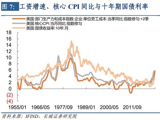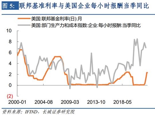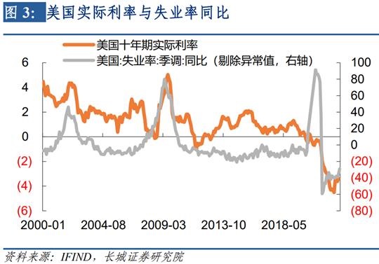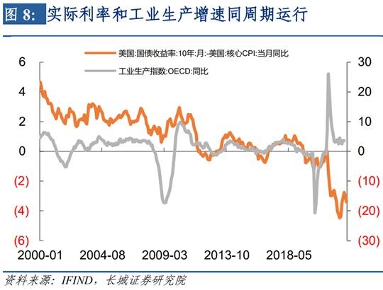 9月8日美联储主席鲍威尔出席加图研究所活动时表示:如果消费者产生了“通胀将会如此延续”的预期,那么我们后面的工作会变得非常艰难,同时也要付出更大代价;历史强烈地警告过我们不要过早放松货币政策。因此长城证券宏观团队认为,十年期国债利率必然会上升至失业率进入上升趋势之中,才会停止上升。从历史规律来看,只有当美国十年期国债利率超过核心CPI同比和工资增速时,通胀的拐点才真正的出现。同日,欧央行在议息会议上也表示:接下来的几次会议上将进一步提高利率抑制需求并防范通胀预期持续上移的风险。欧洲利率也在紧跟美联储加息步伐。从2000年以来的数据看,实际利率(十年期名义国债利率-核心CPI同比)和工业生产增速同周期运行,当工业增速下降时,实际利率也伴随下降;而当实际利率下降至一定程度后,工业增速又开始回升,并带动实际利率回升,这种周而复始的周期运动一直持续到现在。2020年发生疫情之后,随着各国救市政策出台工业生产增速大幅回升,但实际利率却不断下降,促使工业生产增速始终保持在高位,这种背离只有通过实际利率的回升才能结束。在《20220607——美联储加息进程到头了吗?》报告中,我们预计美十年期国债利率会升至4%以上,目前来看3.5%的国债利率仍然不够。加息会提高实际利率,促使工业生产继续下降,进而导致股市持续下跌。
