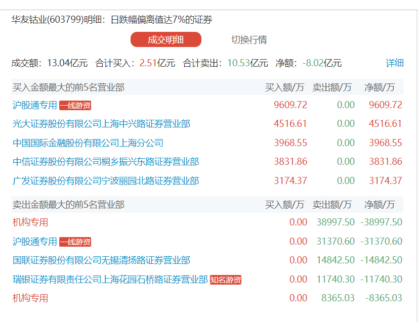 盘后龙虎榜数据显示,两机构合计卖出4.74亿元,其中卖一席位机构卖出3.9亿元;沪股通卖出3.14亿元并买入9609万元。