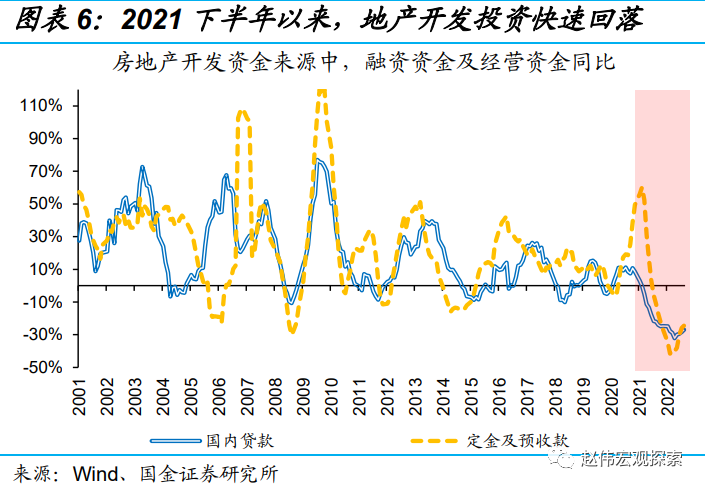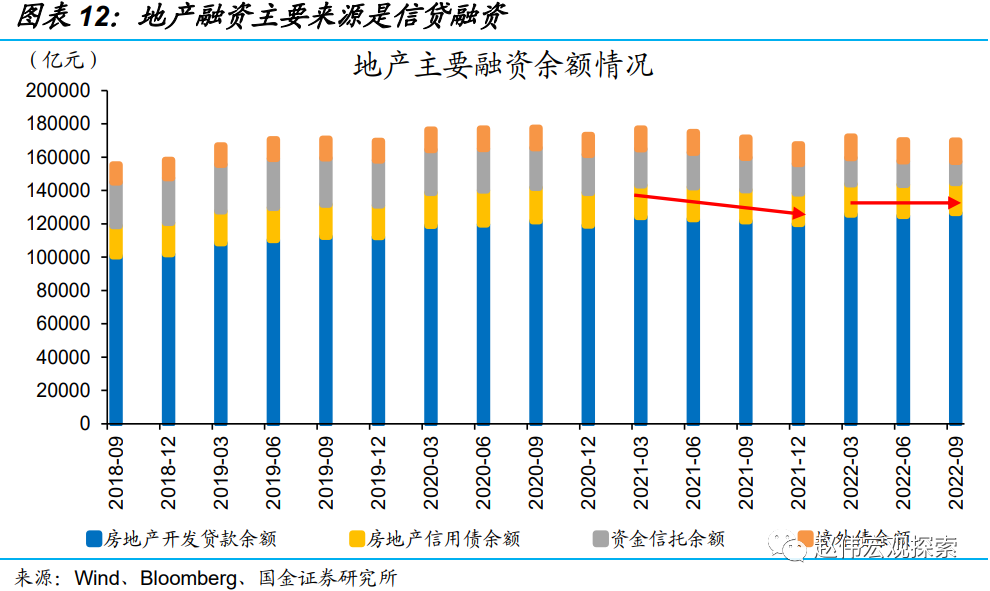 供给政策加码使地产融资加快筑底,目前国企和优质民企改善较为明显,民企整体融资仍然低迷。房地产融资主要来源于信贷、信贷融资占地产总融资比重达74.6%,三季度房地产开发贷款余额同比由二季度的-0.2%转正为2.2%,指向地产融资进入筑底阶段。但目前融资支持效果更多体现在国企和头部优质民企,2021年底地产供给政策出台后,100家典型房企中民企融资规模持续回落、由今年1月的479亿元回落至10月的38亿元,占比由49.8%回落至9.6%,而国有房企融资规模回落幅度较小、由483亿元回落至357亿元。