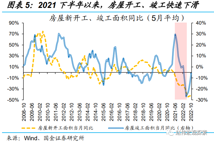 (2)政策效果方面,需求政策加码下,住房贷款利率持续下行,但居民购房意愿不强,地产销售延续低迷;地产供给侧竣工边际改善,融资筑底、但民营房企融资延续低迷。