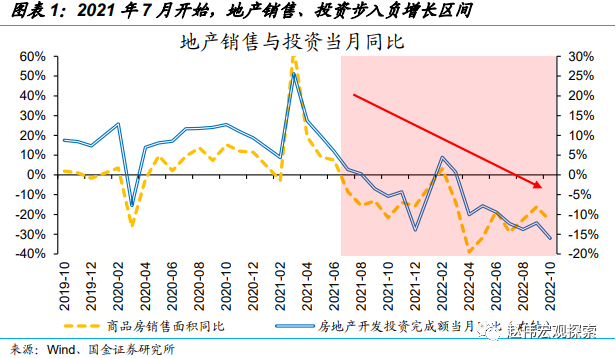 地产延续低迷,央地密集出台调控措施,政策导向从“纠偏供给”到“稳需求、稳供给”再到“供需齐发力”。受房企“三道红线”、银行房地产贷款集中管理等政策影响,地产销售、投资相关指标于2021年7月步入负区间。在此背景下,2021年10月开始出台“保证信贷平稳有序投放”等“供给纠偏”措施、随后不断加码;2022年1月,三四线城市开始出台地产销售端放松政策,地产政策逐步向“稳销售”过渡;今年7月,政治局会议强调“支持刚性和改善性住房需求,保交楼、稳民生”,指向供需两侧支持力度均开始加大。
