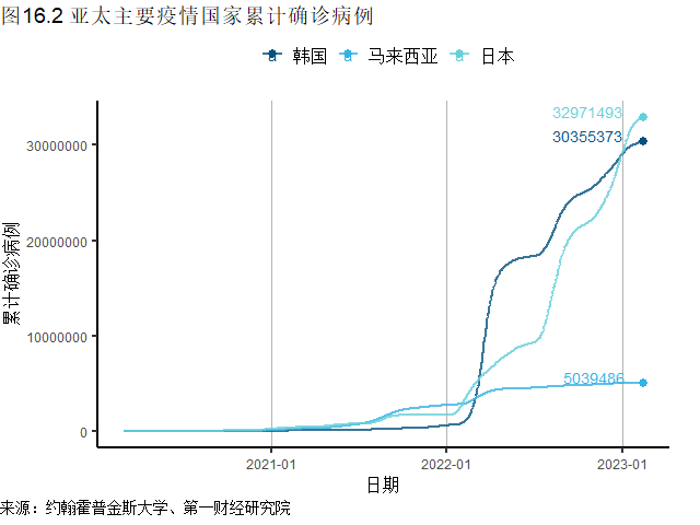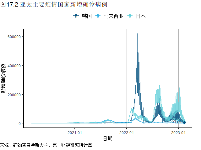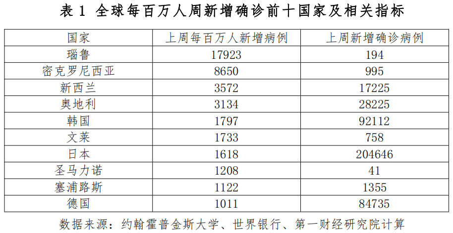在亚太地区,日本(新增20.5万例)、韩国(新增9.2万例)新增确诊病例已连续数周下降,上周两项数据更是创下32周新低。