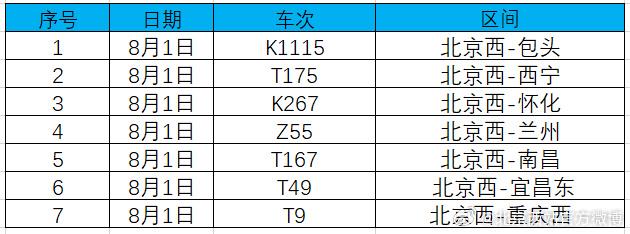 北京西站官方微博消息,受降雨影响,8月1日北京西站部分始发列车停运,已购买停运列车车票的旅客,可于30日内办理全额退票手续。请广大旅客合理安排出行,关注铁路部门公告。