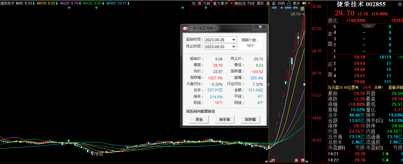 9月20日,捷荣技术午后涨停,股价创出历史新高,报29.70元,成交金额超13亿元。