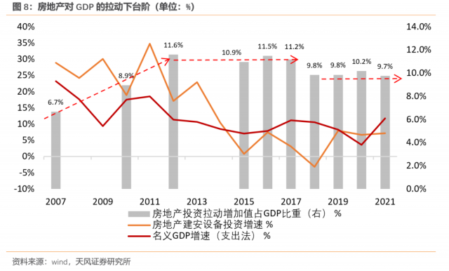 2008年之后的8年是中国经济的中高速增长期(2009年-2016年),出口对经济拉动力减弱,以地产和基建为抓手,投资取代了外需成为国内经济增长的引擎。GDP增速逐渐回落至5-6%左右。