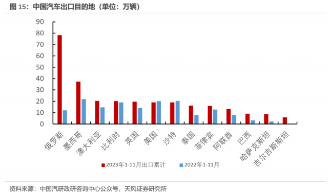 以中汽协口径,2023年中国汽车整车出口491万辆,同比增长57.9%,新能源汽车出口120.3万辆,同比增长77.6%。以海关口径,2023年中国汽车出口522万辆,超过日本430万辆,成为全球第一大汽车出口国。